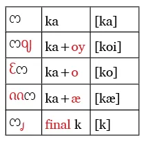 | Complex behaviors | diacritics, reordering, split graphs, optional ligatures |